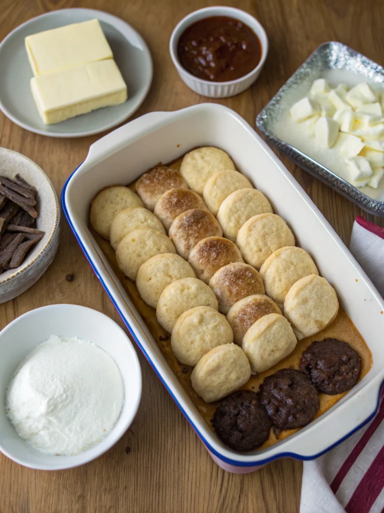 The easiest romany cream biscuit recipe uses basic pantry ingredients: flour, sugar, cocoa, butter or margarine, coconut, and a ready-made chocolate spread for the filling. With no chilling required and just 15–20 minutes of baking time, it’s perfect for beginners or quick sweet cravings.